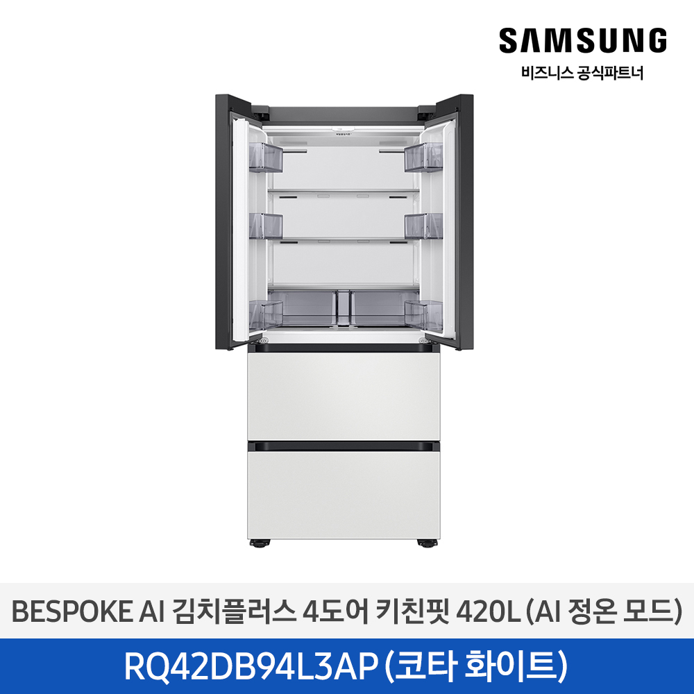 삼성 BESPOKE AI 김치플러스 김치냉장고 4도어 키친핏 420L AI정온모드 코타화이트 / RQ42DB94L3AP01