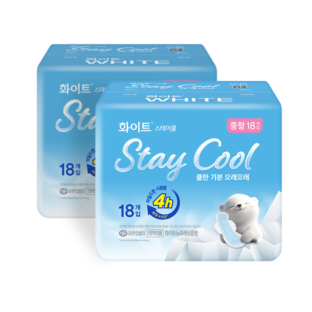 화이트 스테이쿨 생리대 중형 18매x2팩