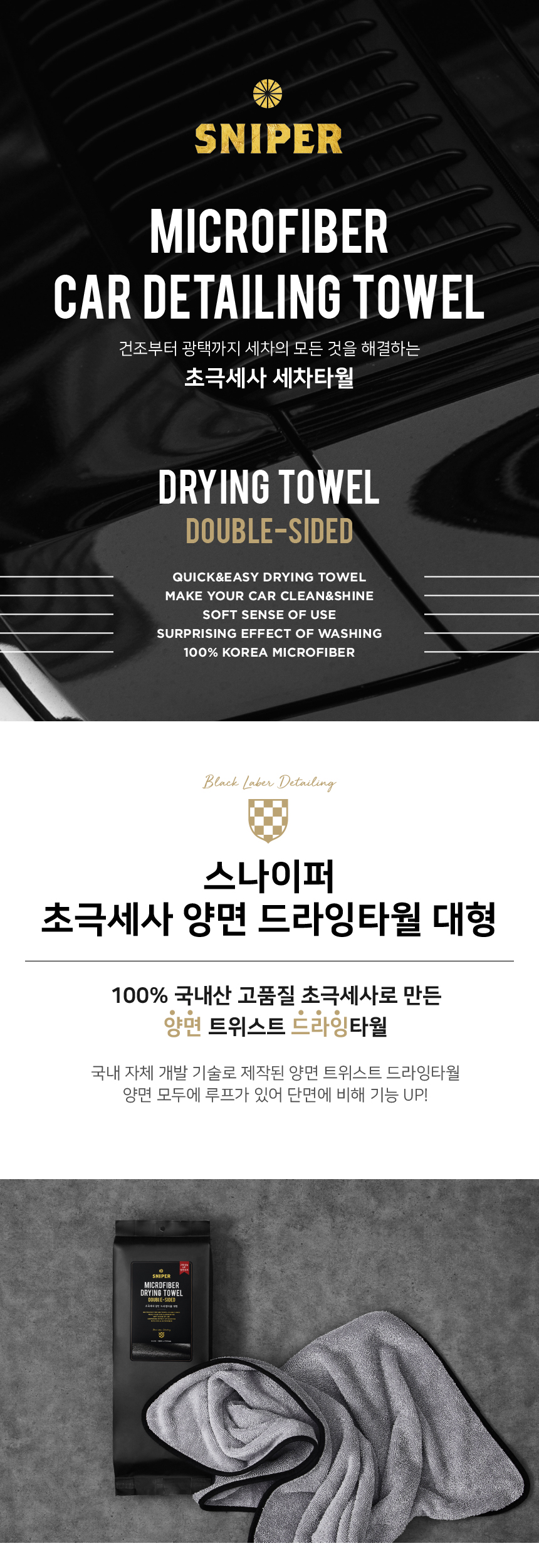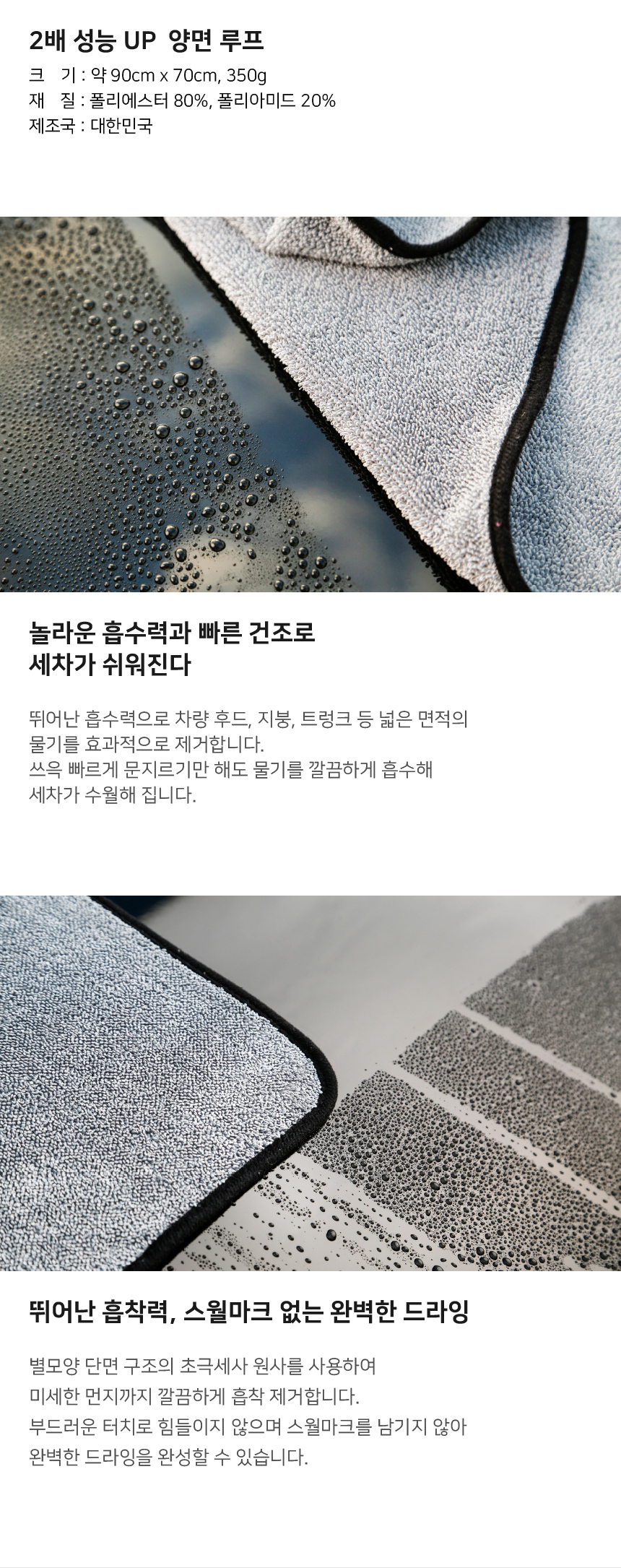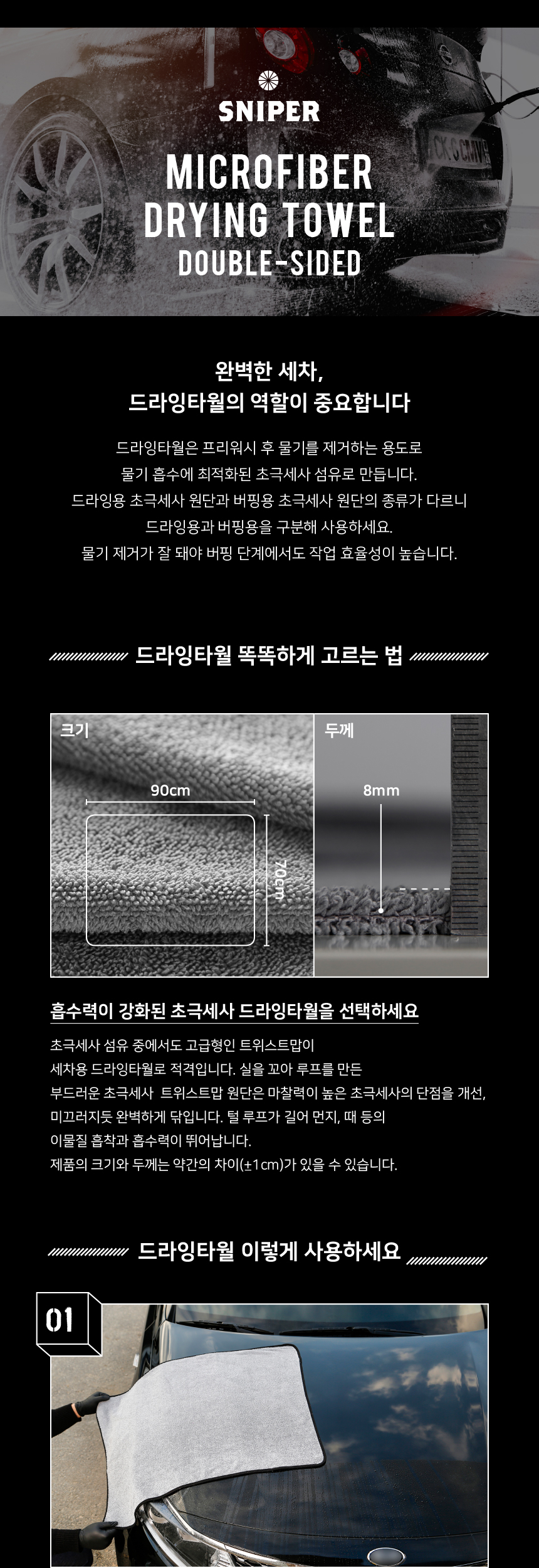 스나이퍼 세차 양면 드라잉 타올 70x90 그레이 1개