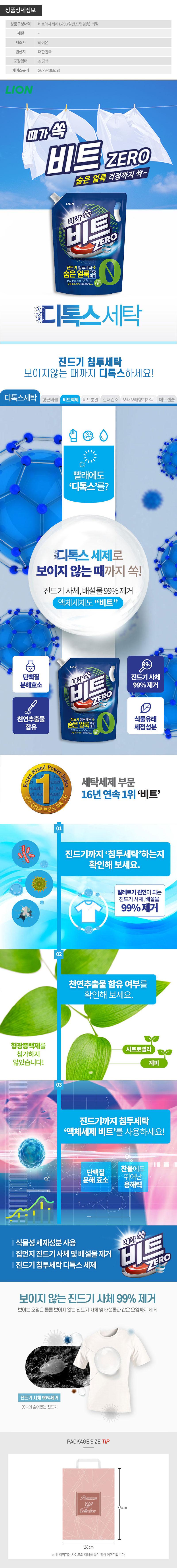 (종이쇼핑백)비트액체세제1.45L(리필)(일반,드럼겸용)