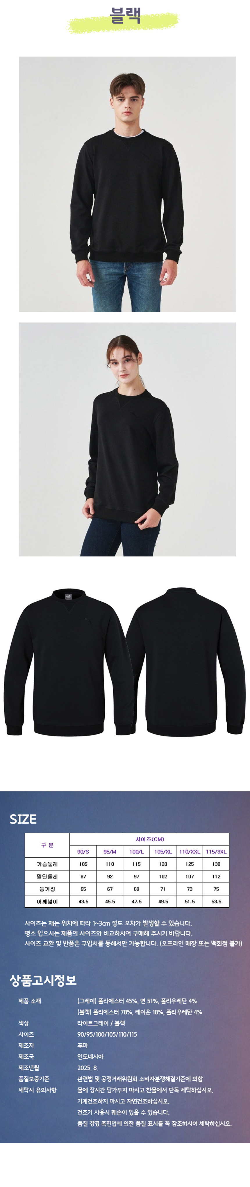 [푸마] 25FW 기모 맨투맨 PU5449