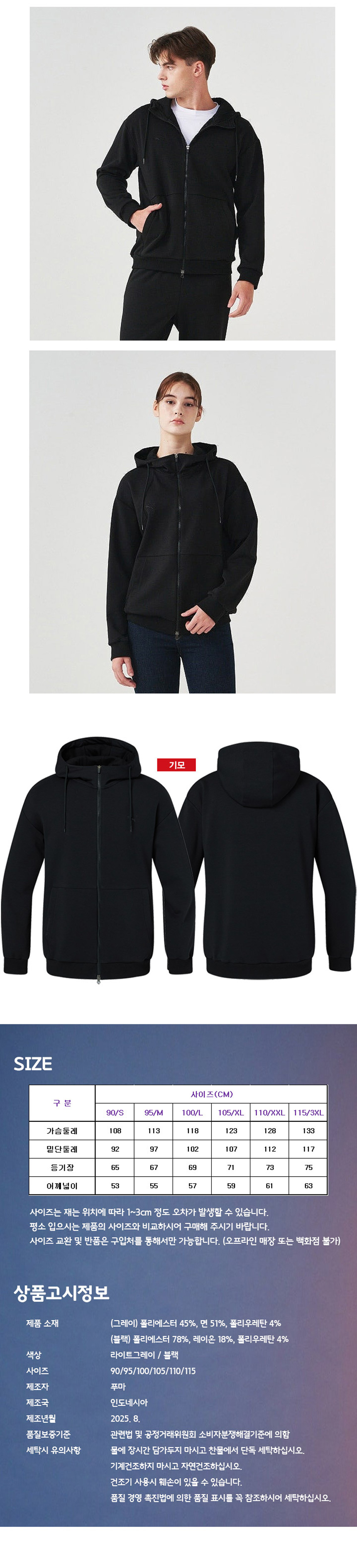[푸마] 25FW 기모 후드 집업자켓(투웨이) PU5456