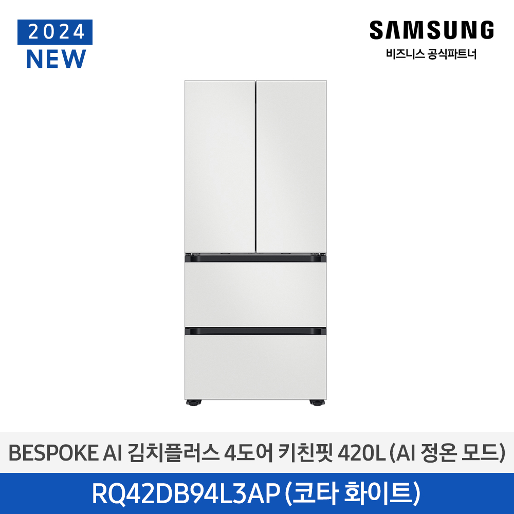 삼성 BESPOKE AI 김치플러스 김치냉장고 4도어 키친핏 420L AI정온모드 코타화이트 / RQ42DB94L3AP01