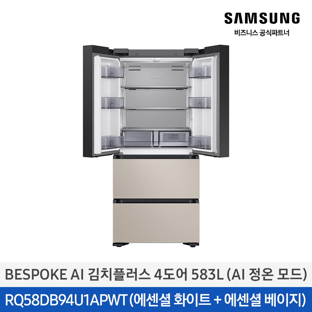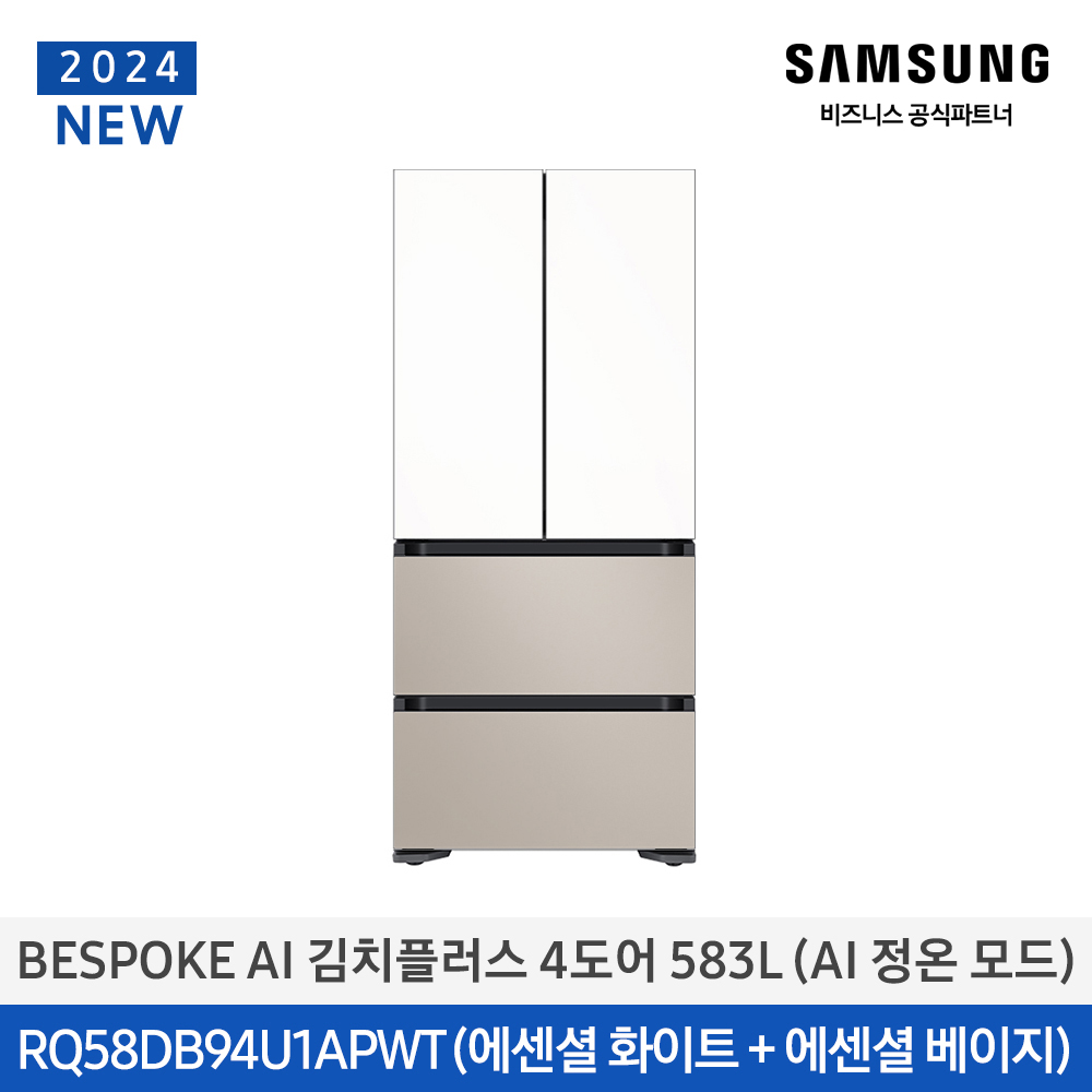 삼성 BESPOKE AI 김치플러스 김치냉장고 4도어 583L AI정온모드 1등급 에센셜화이트+베이지 / RQ58DB94U1APWT