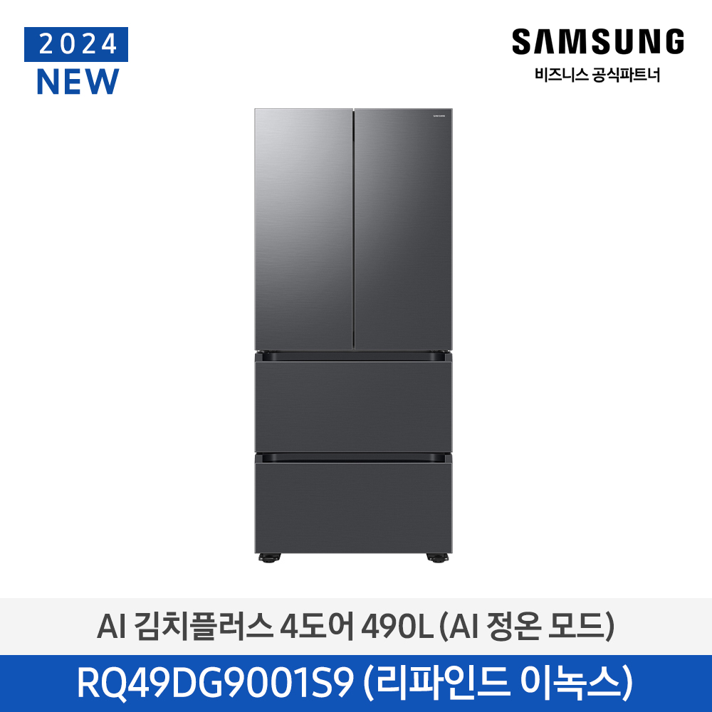 삼성 AI 김치플러스 김치냉장고 4도어 490L (AI 정온 모드) 리파인드 이녹스 1등급 / RQ49DG9001S9
